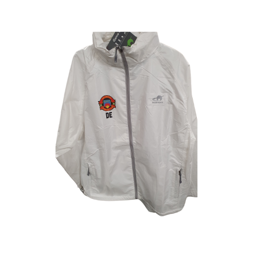 Bright white Teflon coated lightweight polyester outer shell with 2000WP/MVT 100% waterproof & microporous breathable pigmented PU coating, fully lined. Stitch & taped seam construction.