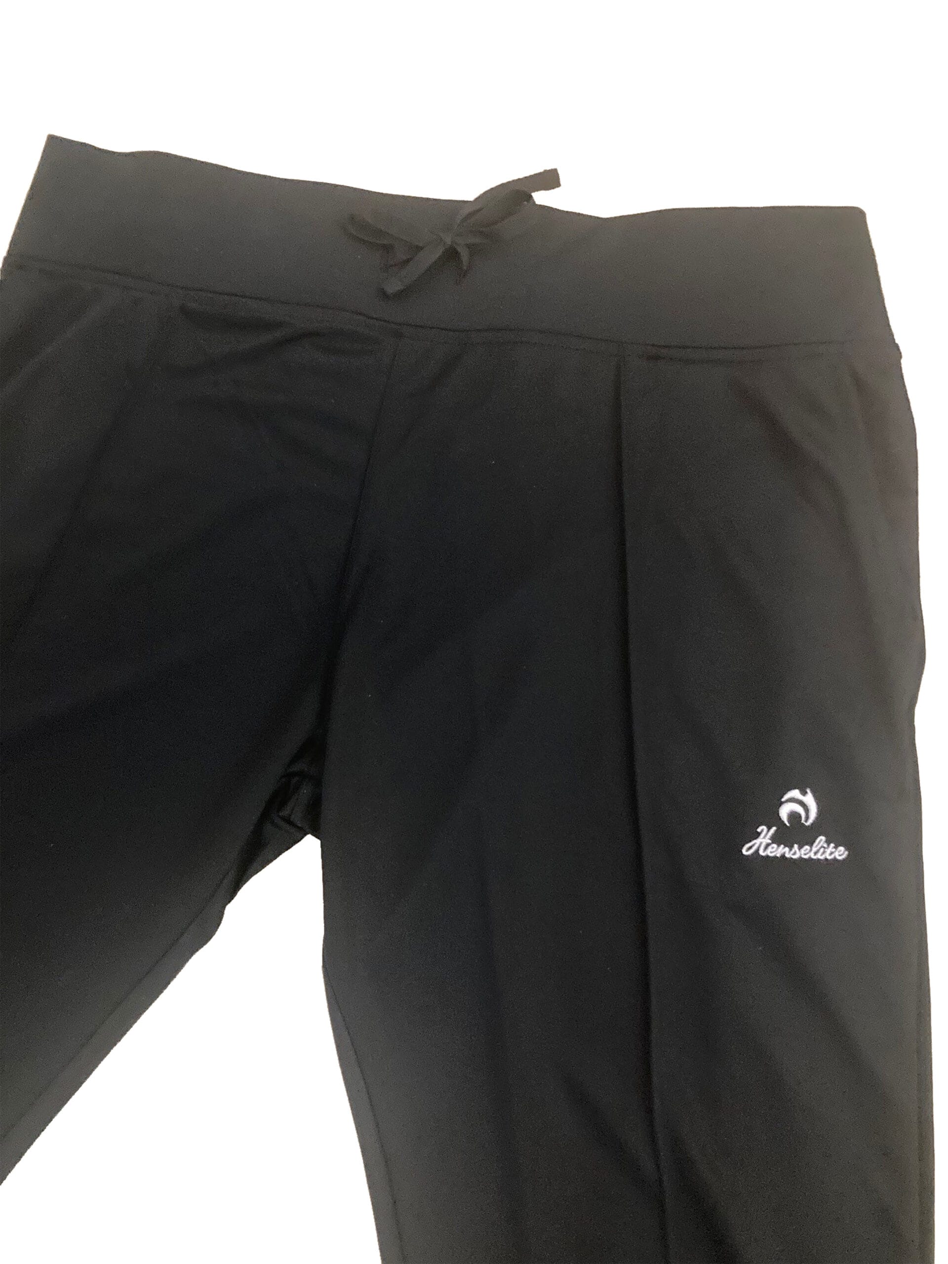 100% polyester speedo fabric with UV/antistatic/breathable features. Featuring a fashionable high-waistband with pull cords. Two side pockets. Henselite logo embroidered on left leg.